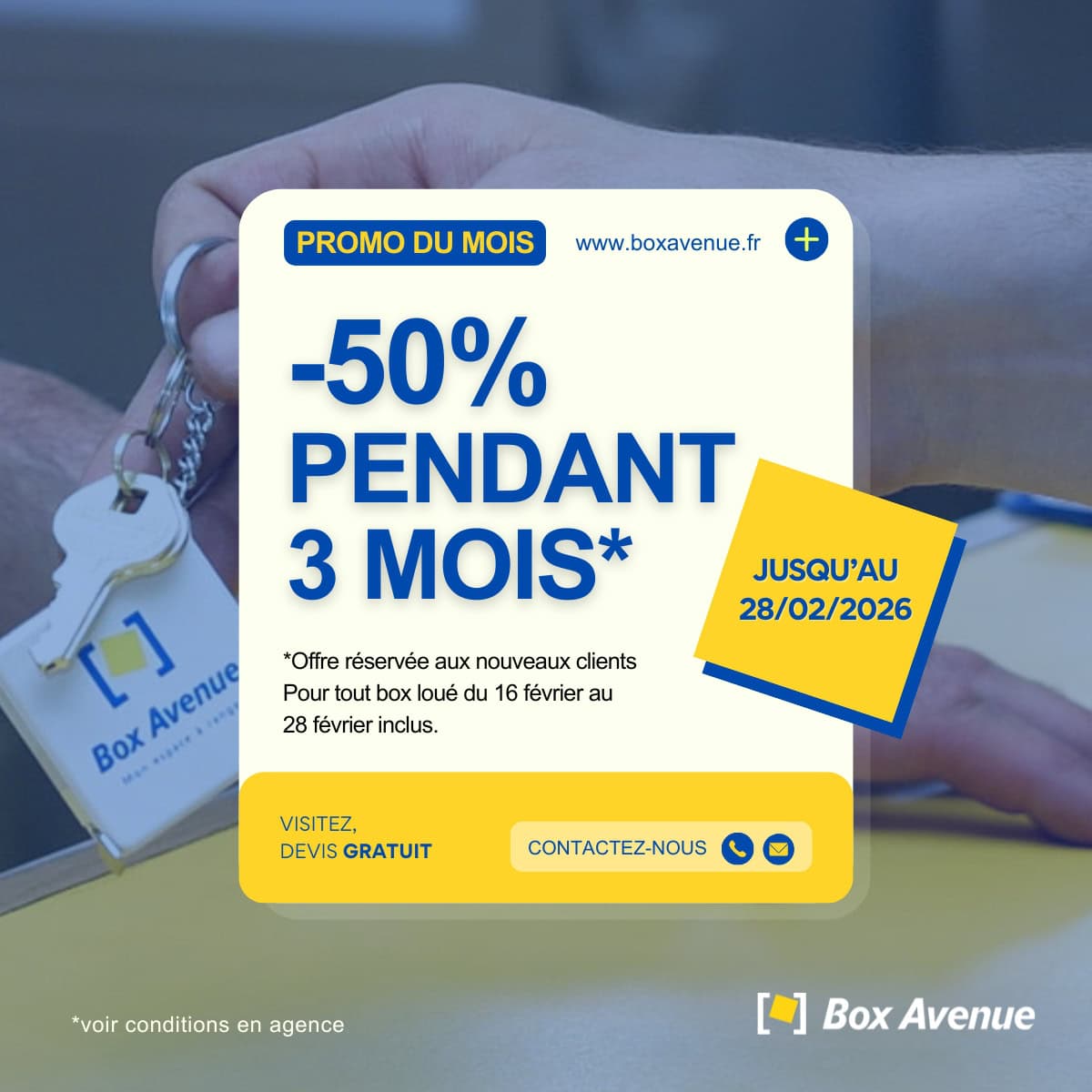 Chez Box Avenue, nous gardons vos biens en lieu sûr grâce à nos espaces surveillés et accessibles uniquement par digicode. Nos tarifs sont transparents et compétitifs, nous n’avons aucun frais caché. De plus, vous pouvez bénéficier de réductions et de promotions tout au long de l’année.